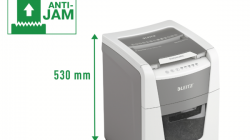 W pełni automatyczna niszczarka do papieru firmy Leitz z unikalną funkcją samooczyszczania.