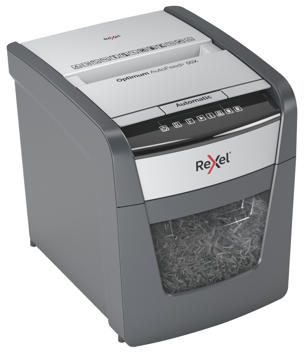 Niszczarka automatyczna do papieru Optimum AutoFeed 50X jednorazowo niszczy automatycznie do 45 kartek A4 (80 gsm), tnąc arkusze na konfetti (o wymiarach 4 x 28 mm), co zapewnia poziom bezpieczeństwa P-4. Wyposażona jest w automatyczny podajnik i kompaktowy, 20-litrowy pojemnik na ścinki, co sprawia, że idealnie nadaje się do użytku w domu lub w domowym biurze. Nie wymaga ręcznego podawania papieru ani wcześniejszego usuwania zszywek i spinaczy - ta automatyczna niszczarka całą pracę wykona za Ciebie