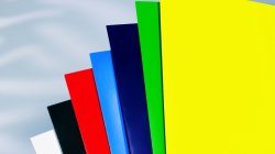 Błyszczący karton do oprawy dokumentów, powlekany jednostronnie. Gramatura 250g/m.