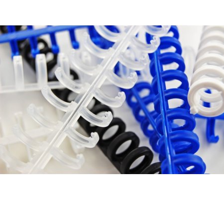 Grzbiety do oprawy ClickBind (grzbiety zatrzaskowe, IBIClick) wielorazowego użytku grzbiety do oprawy zamykanej za pomoca suwaka (ZIPPERA) w rozmiarach 8 mm, 12 mm i 16 mm (odpowiednio do 45, 95, 145 kartek) w kolorach:białym, czarnym, przezroczystym.